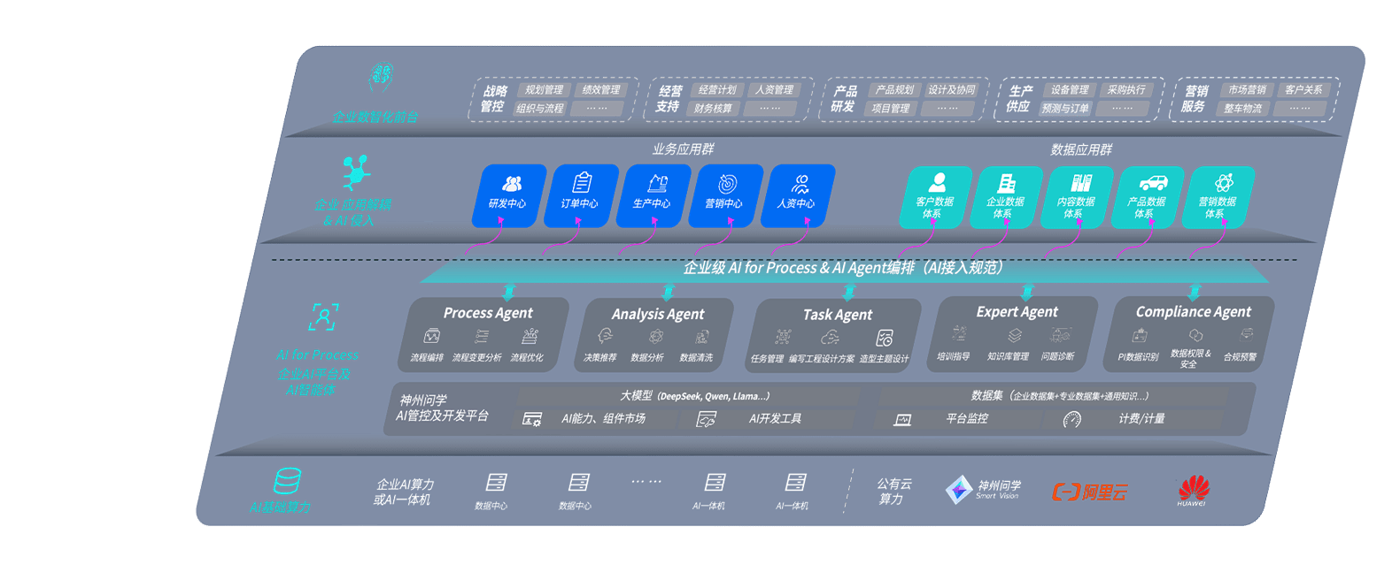 端到端的一站式AI工作空间深度融合了从企业战略规划到日常经营的全流程业务板块,,,,定向解决车企内部领域多、、、部门多、、链条长、、、、场景碎片化等难题,,支持车企快速构建以AI为核心的生产力写作体系,,,实现任务执行与AI能力的无缝集成与交互